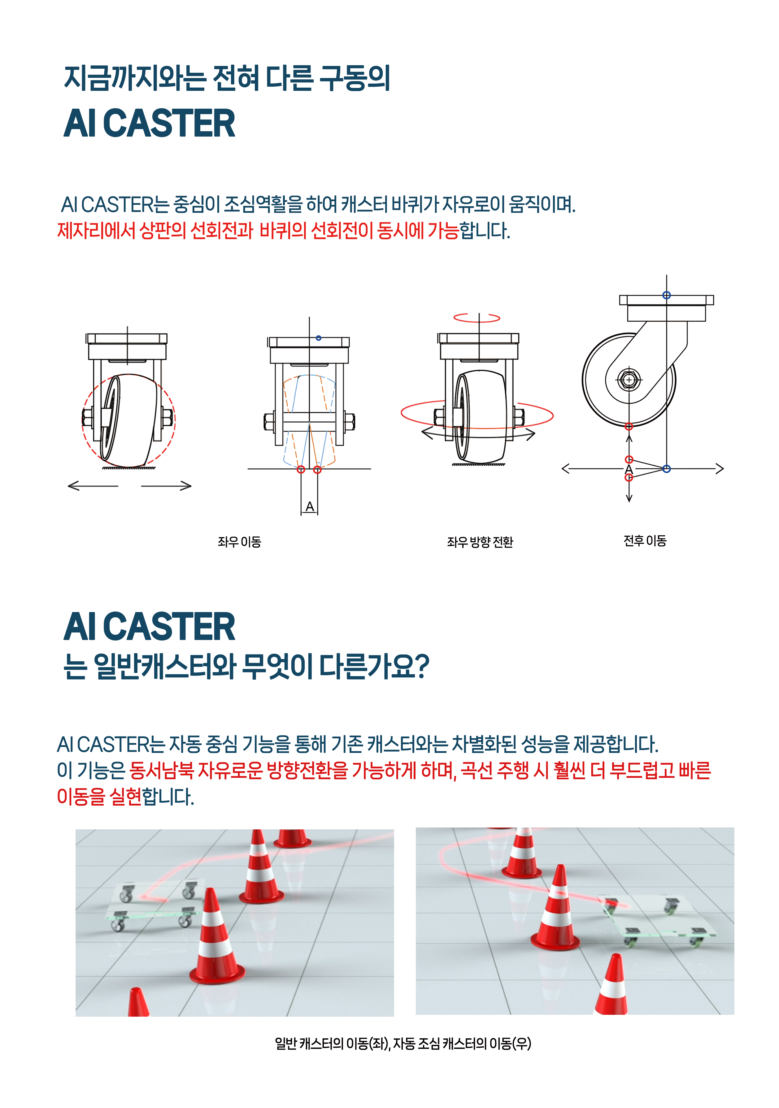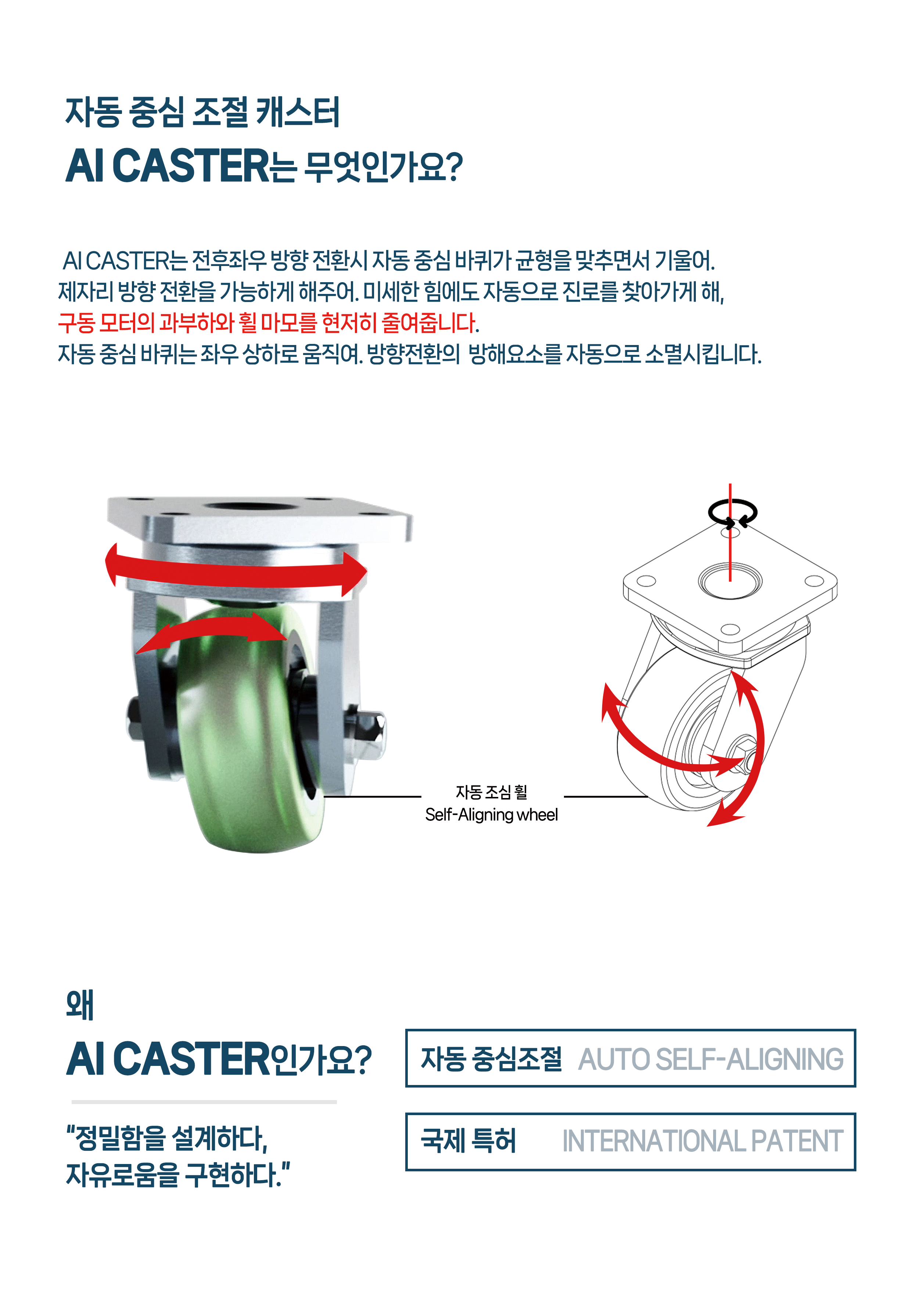 특허 new AI 자동조심 캐스터(SELF-ALIGNING CASTER) 세계 최초의 자동조심캐스터(SELF-ALIGNING CASTER)입니다. PDF 다운 도면 인쇄 DWG (2D) SAT (3D) 구매 및 상담 문의